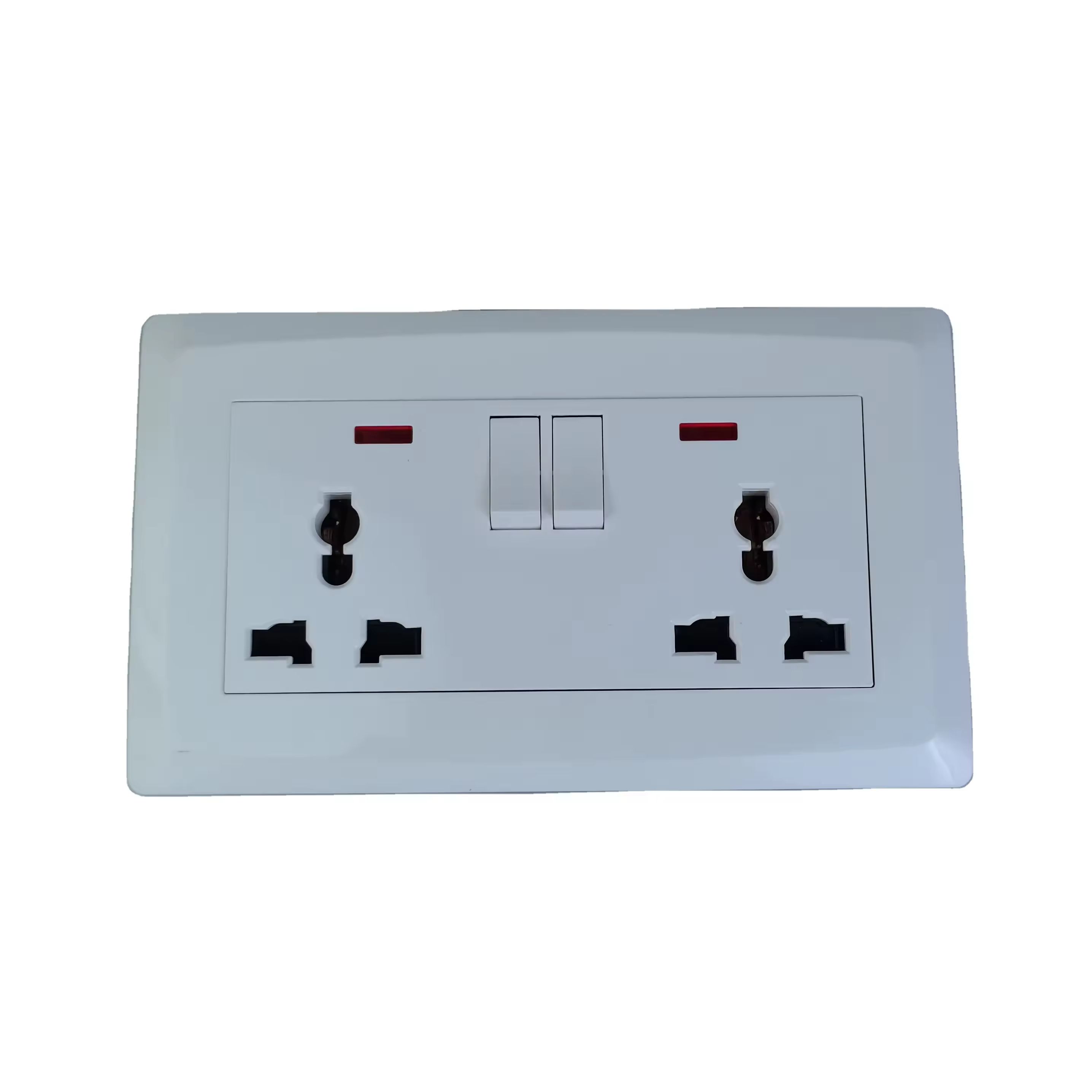International Universal 5 Hole Dual Socket Rectangular Wall Socket Switch Control with EU Standard 13A Power Outlet White