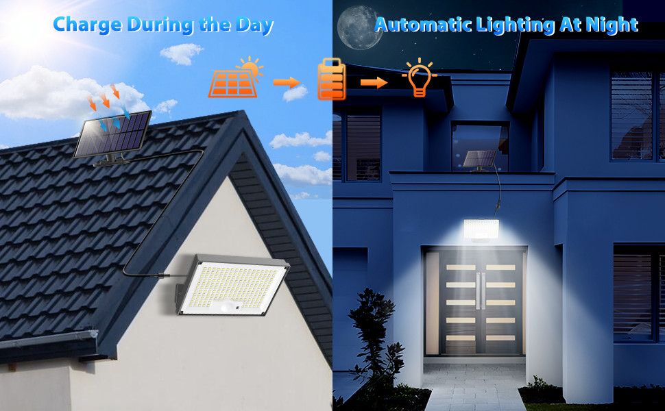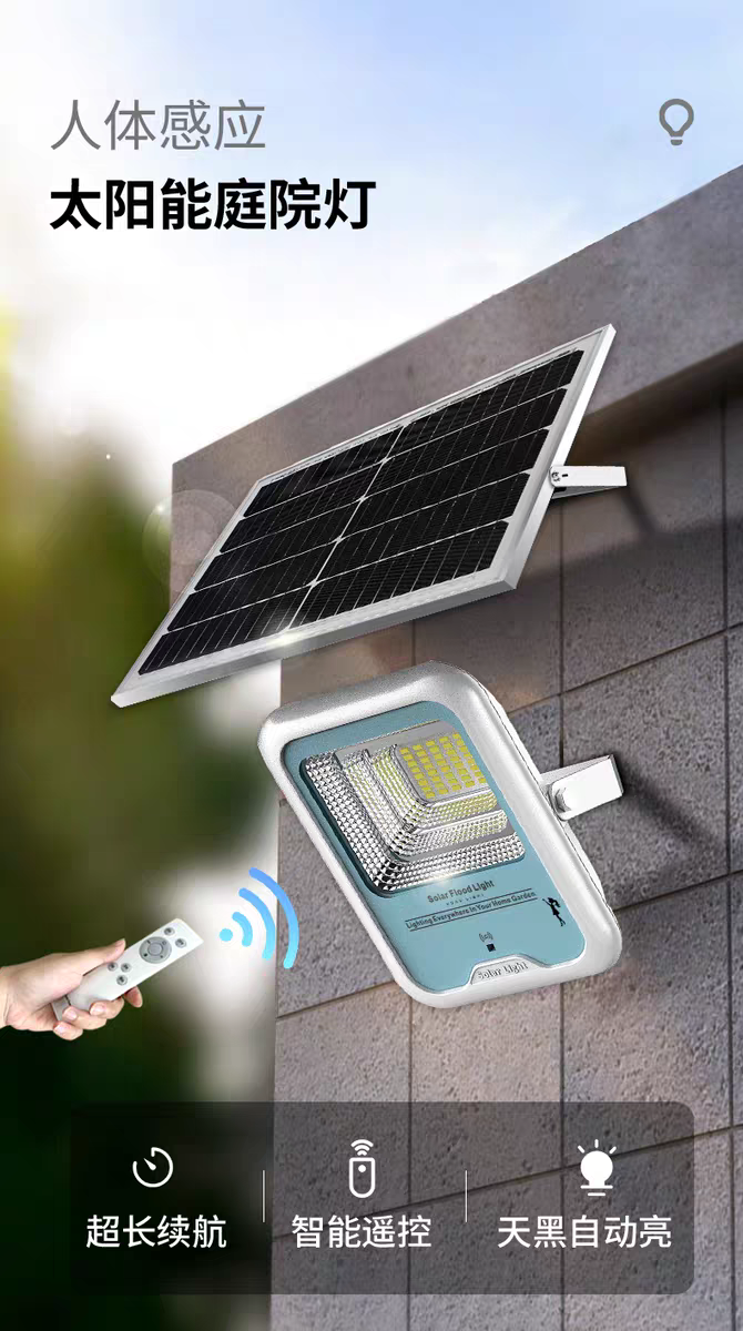 Project Outdoor solar lights, motion sensor, human body sensor, with remote control, outdoor waterproof and rainproof IP65, suitable for patios, terraces, gardens, and garages